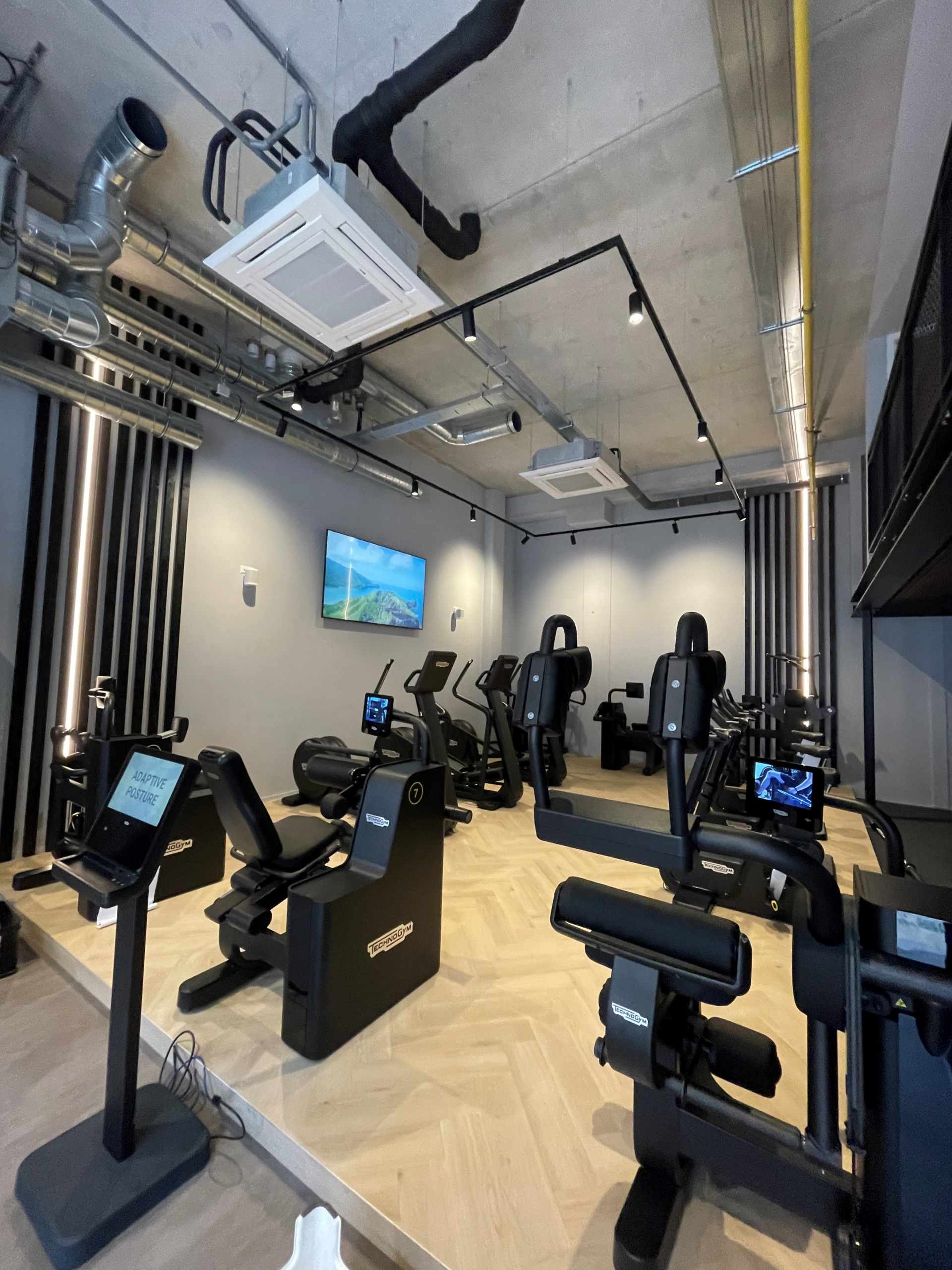 Van lege Unit naar industrieel ogende sportschool. In het gebouwde “split level” werden kantoorruimte, Kleed- en doucheruimtes gemaakt